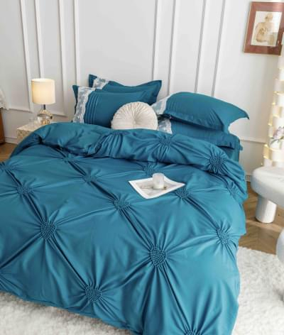 Bumbacul Finet este un material special, datorita rezistentei si durabilitatii in timp, atat a materialului, cat si broderiei folosite pentru realizarea pliurilor perfecte. Acest material isi pastreaza aspectul minunat, atat timp cat sunt respectate instructiunile de intretinere. De asemenea este un material inovativ, datorita faptului ca nu necesita calcare dupa spalare si ramane ca nou o lunga perioada de timp. Pliurile sunt realizate prin broderie frumoasa, pe partea superioara a cearsafului de pilota si pe partea superioara a fetelor de perna. Interiorul acestora, si cearsaful de pat sunt simple si nu prezinta pliuri, pentru a nu incomoda pe parcursul noptii.